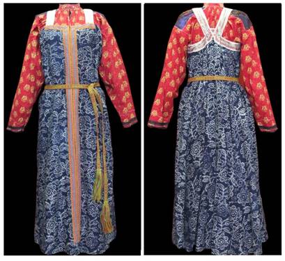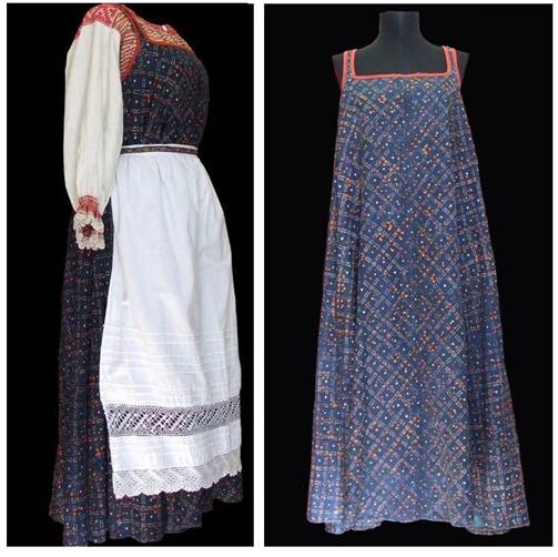 Традиционный косоклинный сарафан из <набойки> вычегодских коми. Конец XIX- нач XX вв. Фото Пасынкова С.В. из Фондов Национального музея Республики Коми.