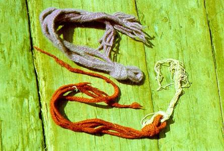 Ритуальные тканые пояски. Село Латьюга, Удорский район Республики Коми. 1992 г. Фото В.Э. Шарапова. В отличие от повседневной, праздничную и обрядовую одежду запрещалось стирать - раз в год (летом) её выветривали на солнце, либо выпаривали над каменкой в бане.[22] Соблюдались определенные запреты и при стирке повседневной одежды: нельзя стирать вместе с мужской и детской одеждой наряды женские - у мужчин не будет удачи в охотничьем промысле, а дети могут заболеть.[23] Согласно материалам В.П. Налимова, у вычегодских коми считалось, что одежда любой взрослой женщины пропитан пеж, воздействие которого лишает одежду свойства оберега.[24] О супругах, не меняющих нижнее бельё после совместной ночи, у печорских коми говорят: вир вуджöр абу (в значении - <они остались совсем без вуджöр>).[25] Вместе с тем, в повериях вычегодских коми мужское нижнее бельё наделялось и магической силой: для женщины хорошим оберегом считались мужские кальсоны, а так же подвязка от них. В прошлом, коми женщины носили мужское нижнее бельё в качестве ритуальной защиты в период месячных.[26] Известны случаи, когда мужские кальсоны применялись в качестве магического средства для повышения плодовитости скота (хлестали корову, чтобы та принесла приплод).[27] По материалам В.П. Налимова у вычегодских коми, умершей вдове, обязательно укладывали в гроб кальсоны и рубаху её покойного мужа.[28] По поверьям, одежда, нажитая супругами совместно, является оберегом не только каждого из них в отдельности, но и их взаимной привязанности. Считается, что можно легко разрушить эту связь, если повредить одежду жены или незаметно встряхнуть рубаху мужа, пока он моется в бане.[29] У коми символом супружеской связи выступает платок, за концы которого молодые держались в ходе венчания.[30] У вычегодских коми после смерти одного из супругов, этот платок разрывается пополам: одна его часть укладывается в гроб усопшего, а другая хранится у вдовы (или вдовца) до ухода ее в мир иной.[31] Показательны в плане рассматриваемой темы и запреты, связанные с кулöн паськöм (погребальной одеждой): нельзя примерять или показывать на себе погребальный наряд - к скорой смерти. У печорских коми говорят, что "показывать кому-либо собственную кулöм паськöм - дразнить смерть".[32]Представления о непосредственной связи исхода души усопшего с его одеждой нашли отражение в целом ряде поверий удорских и вычегодских коми: одежду и бельё, в которых умирал человек, обязательно выстирывали и хранили до полного истлевания на чердаке дома, если этого не сделать, то душа покойного будет страдать; у удорских коми старообрядцев запрет на обряжение покойного в цветную, узорчатую одежду мотивируется следующим образом - "иначе его душа не сможет обрести покой и будет ходить по воде и ждать пока платье вылиняет, а значит полегчает"[33]; нельзя оставлять завязанными узлы на одежде погребаемого (на поясе, головном платке, на обуви и на гайтане) в момент опускания гроба в могилу - в противном случае, покойник будет часто тревожить живых в их снах.[34] В этой связи, традицию подготовки для себя погребальной одежды, которая обязательно шьется без узлов на швах (аналогичным образом - без единого узелка - шьется ритуальная одежда для женщин, страждущих изгнать из своего тела шеву[35]), можно трактовать и как стремление облегчить предстоящую смерть (<исход душ